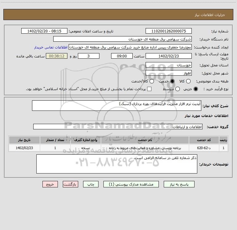 شرح کلی نیاز: آپدیت نرم افزار مدیریت فرآیندهای بهره برداری (سبک)