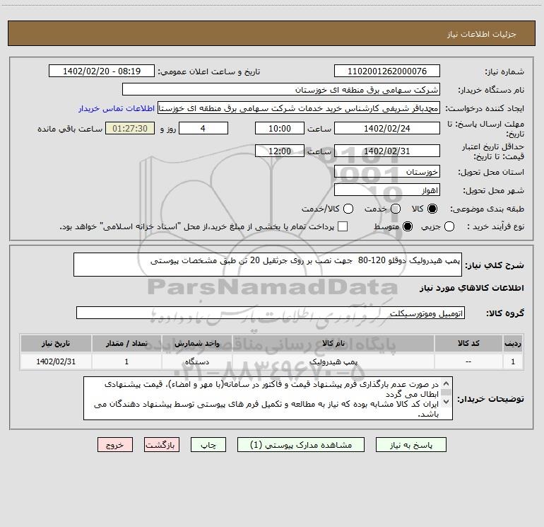 شرح کلی نیاز: پمپ هیدرولیک دوقلو 120-80 جهت نصب بر روی جرثقیل 20 تن طبق مشخصات پیوستی