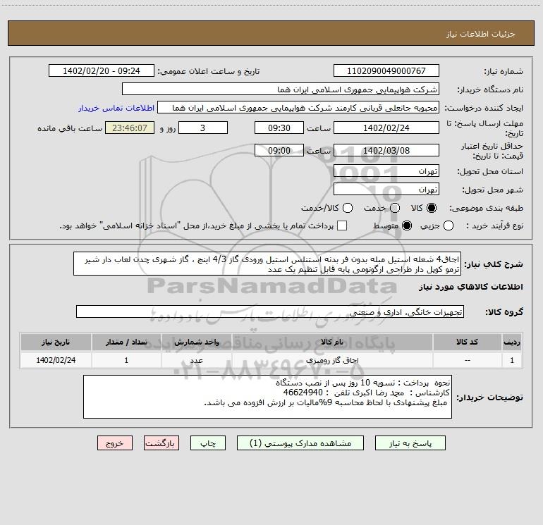 نام دستگاه خریدار:شرکت هواپیمایی جمهوری اسلامی ایران هما