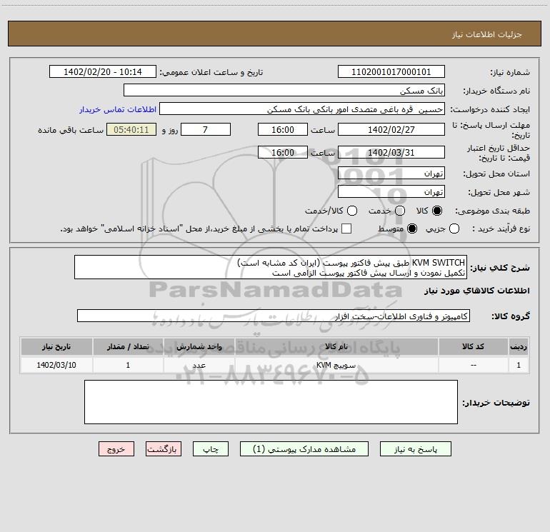 شرح کلی نیاز: KVM SWITCH طبق پیش فاکتور پیوست (ایران کد مشابه است) تکمیل نمودن و ارسال پیش فاکتور پیوست الزامی است