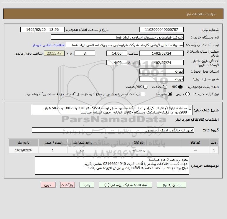 نام دستگاه خریدار:شرکت هواپیمایی جمهوری اسلامی ایران هما