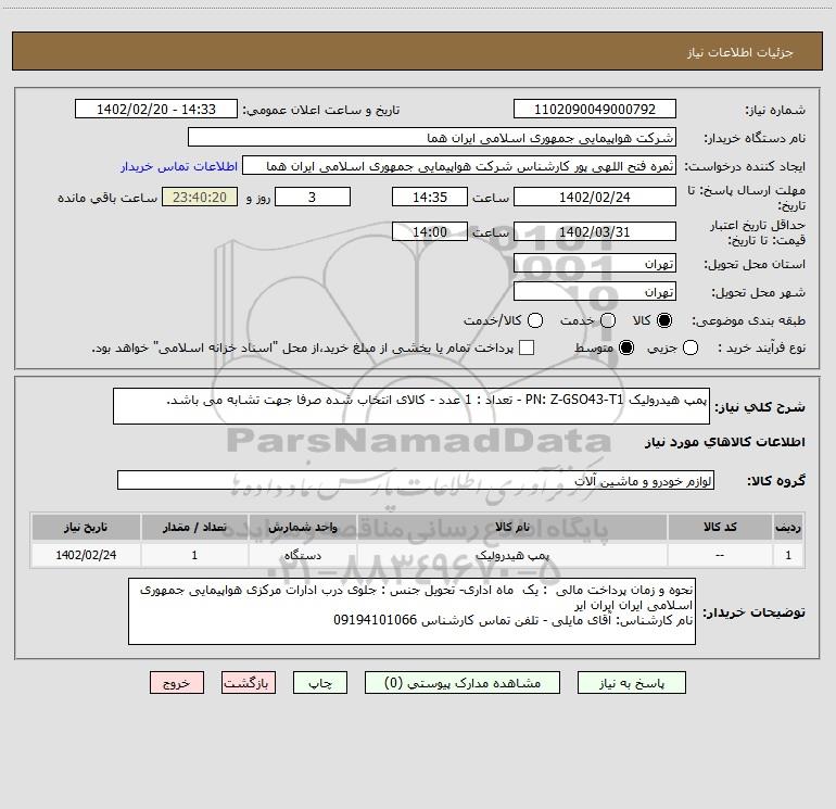 نام دستگاه خریدار:شرکت هواپیمایی جمهوری اسلامی ایران هما