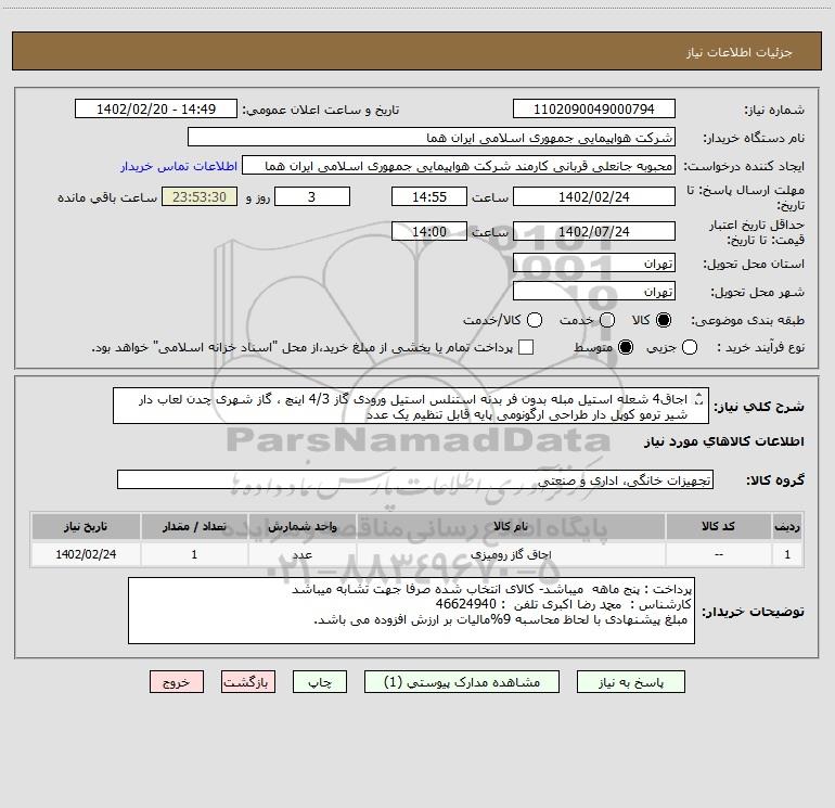 نام دستگاه خریدار:شرکت هواپیمایی جمهوری اسلامی ایران هما