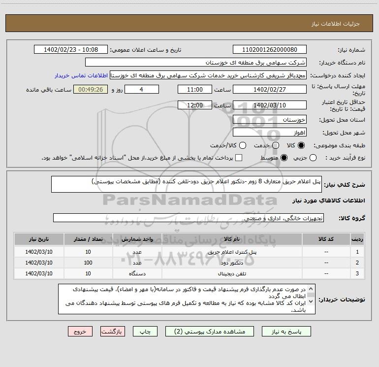 نام دستگاه خریدار:شرکت سهامی برق منطقه ای خوزستان