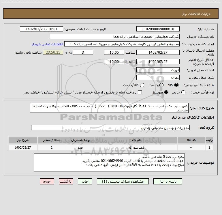 نام دستگاه خریدار:شرکت هواپیمایی جمهوری اسلامی ایران هما