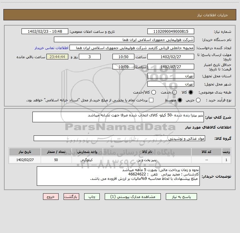 نام دستگاه خریدار:شرکت هواپیمایی جمهوری اسلامی ایران هما