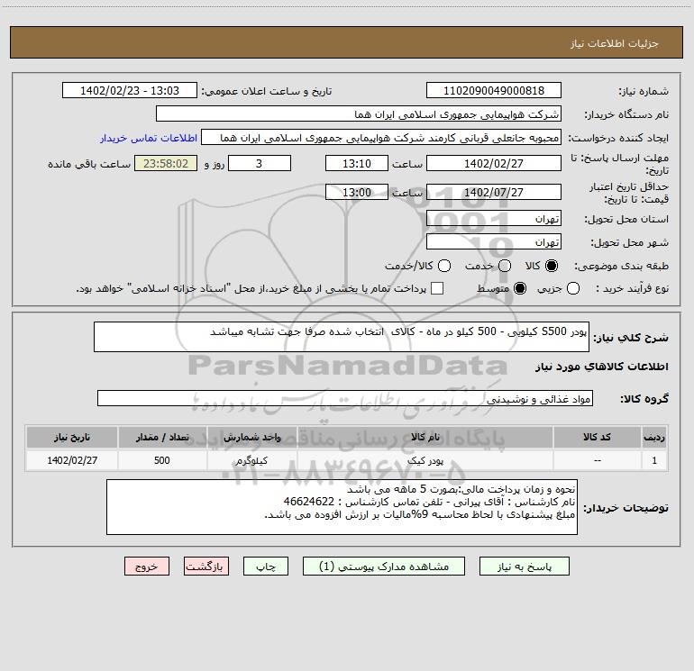 شرح کلی نیاز: پودر S500 کیلویی - 500 کیلو در ماه - کالای انتخاب شده صرفا جهت تشابه میباشد
