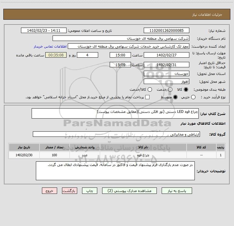 استعلام چراغ قوه LED دستی (نور افکن دستی)(مطابق مشخصات پیوست), استعلام چراغ قوه LED دستی (نور افکن دستی)(مطابق مشخصات پیوست)