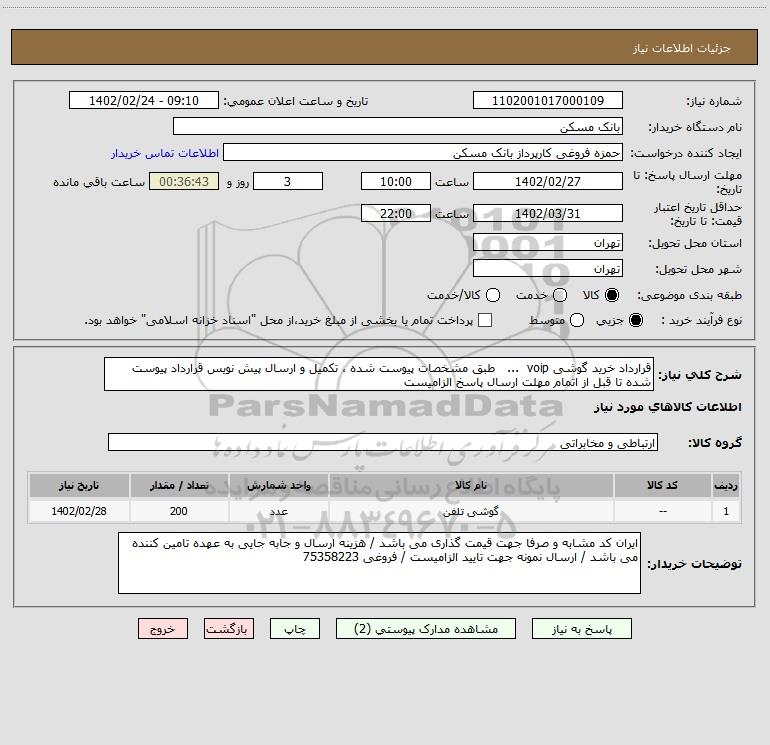 شرح کلی نیاز: قرارداد خرید گوشی voip ... طبق مشخصات پیوست شده ، تکمیل و ارسال پیش نویس قرارداد پیوست شده تا قبل از اتمام مهلت ارسال پاسخ الزامیست