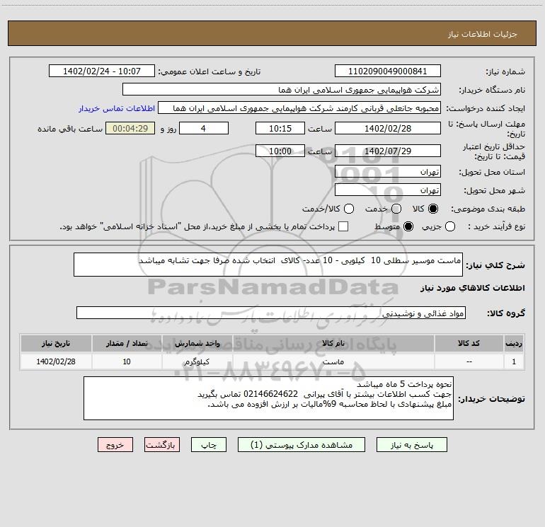 نام دستگاه خریدار:شرکت هواپیمایی جمهوری اسلامی ایران هما