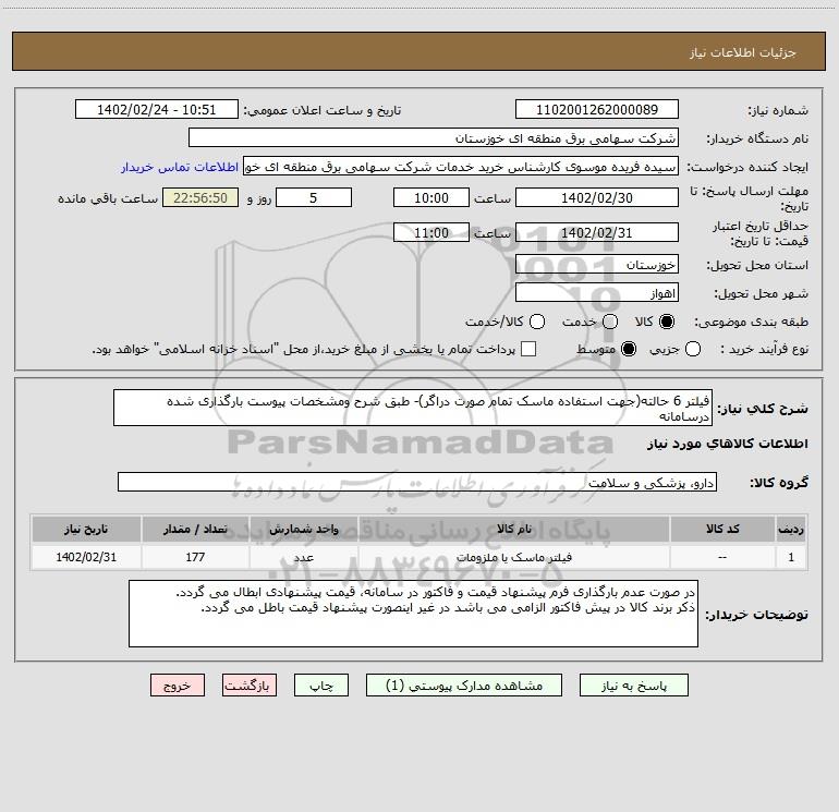 نام دستگاه خریدار:شرکت سهامی برق منطقه ای خوزستان