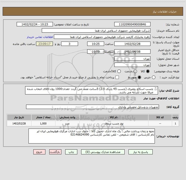 نام دستگاه خریدار:شرکت هواپیمایی جمهوری اسلامی ایران هما