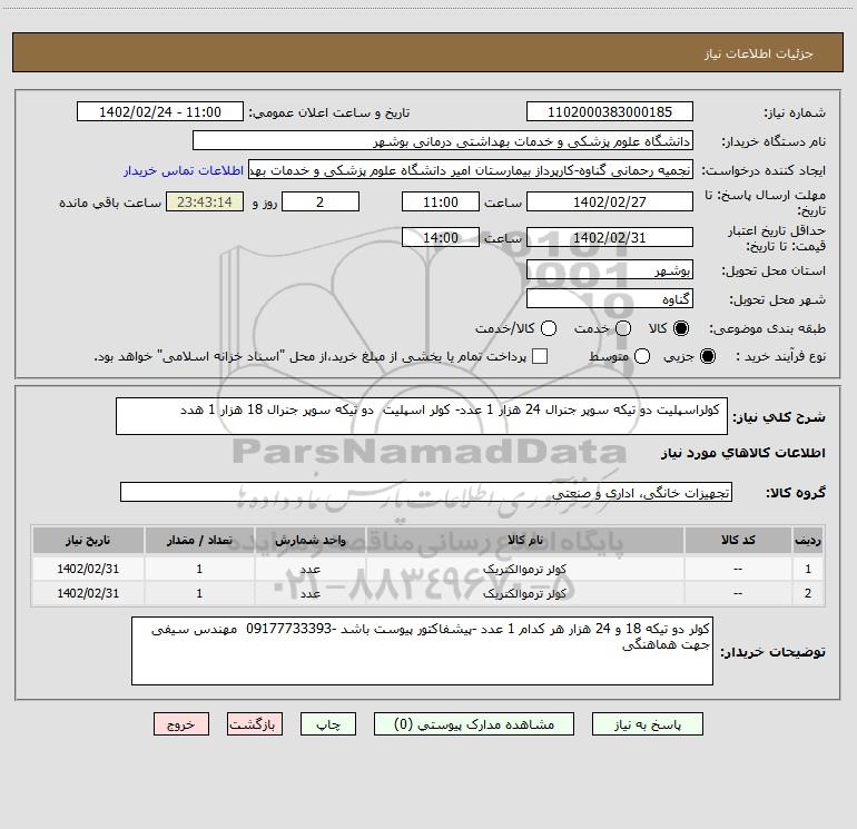 استعلام کولراسپلیت دو تیکه سوپر جنرال 24 هزار 1 عدد- کولر اسپلیت دو تیکه سوپر جنرال 18 هزار 1 هدد, استعلام کولراسپلیت دو تیکه سوپر جنرال 24 هزار 1 عدد- کولر اسپلیت دو تیکه سوپر جنرال 18 هزار 1 هدد