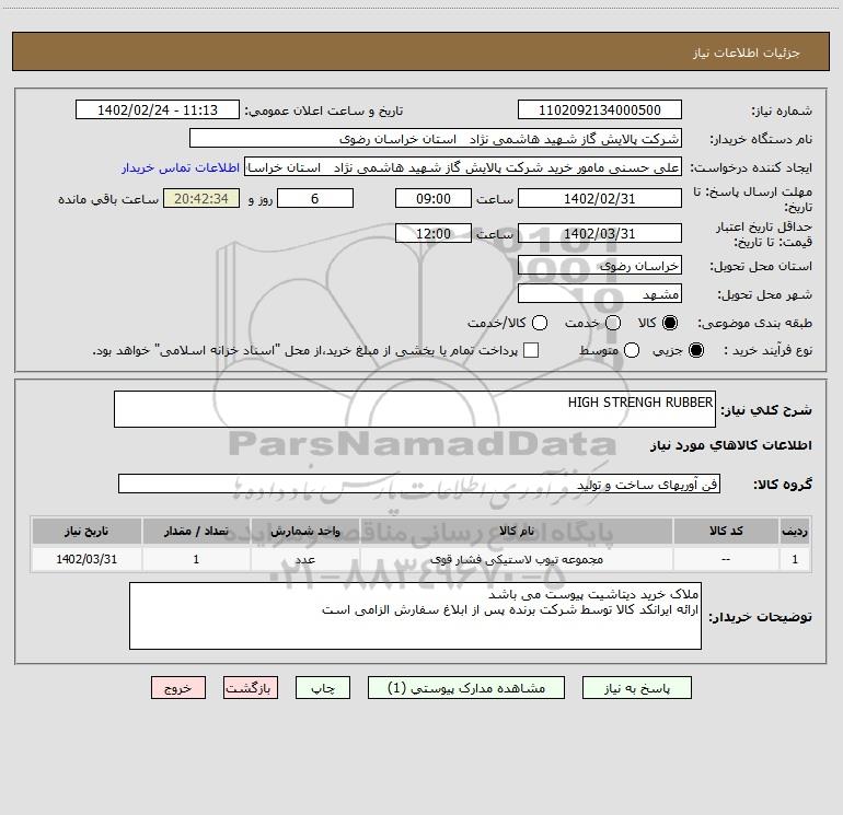 شرح کلی نیاز: HIGH STRENGH RUBBER