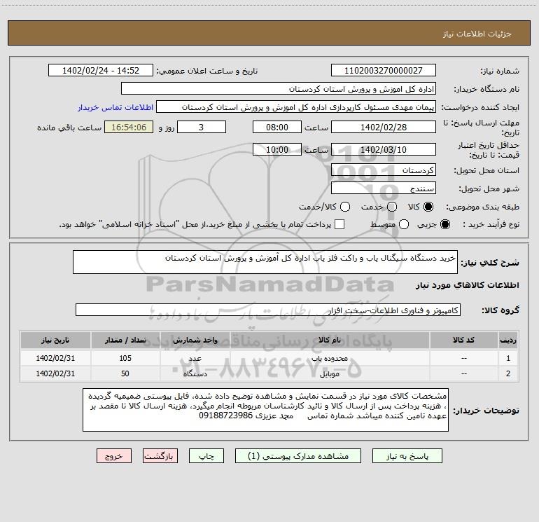 شرح کلی نیاز: خرید دستگاه سیگنال یاب و راکت آشکارساز فلز اداره کل آموزش و پرورش استان کردستان