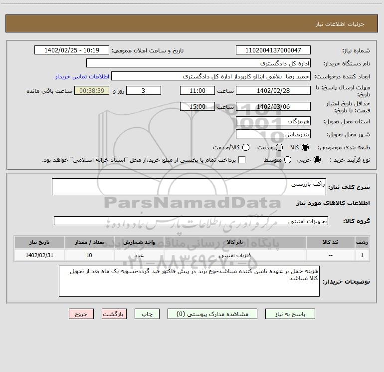 استعلام بها و موضوع استعلام استعلام راکت بازرسی به اطلاع کلیه شرکت‌ها و افراد متخصص واجد شرایط می‌رساند، آگهی گذار در نظر دارد از طریق استعلام بها، نسبت به انتخاب و دریافت پیشنهادات اقدام نماید. این استعلام با کد آگهی ثبت شده در سامانه خبرگزاری پارس نماد : 5828517 منتشر شده است. مشخصات استعلام : تاریخ شروع استعلام: 1402/02/25 آخرین مهلت ارسال پیشنهاد قیمت : 1402/02/28 و محل اجرای پروژه : استان هرمزگان میباشد. استعلام قیمت مورد درخواست : استعلام راکت بازرسی با دسته‌بندی‌های تخصصی و گروه های مرتبط : انواع دستگاه های آشکارساز فلز و لوله یاب, سیستم های حفاظتی-دوربین مدار بسته،دزدگیر،آیفون تصویری و آنتن مرکزی, تجهیزات لیزری, استعلام اطلاع رسانی میگردد. شرایط شرکت در استعلام آنلاین : ابتدا ثبت نام در سامانه استعلام پارس نماد و تکمیل مدارک موردنیاز و بارگذاری در سامانه رعایت تمامی ضوابط و الزامات مندرج در اسناد استعلام است.