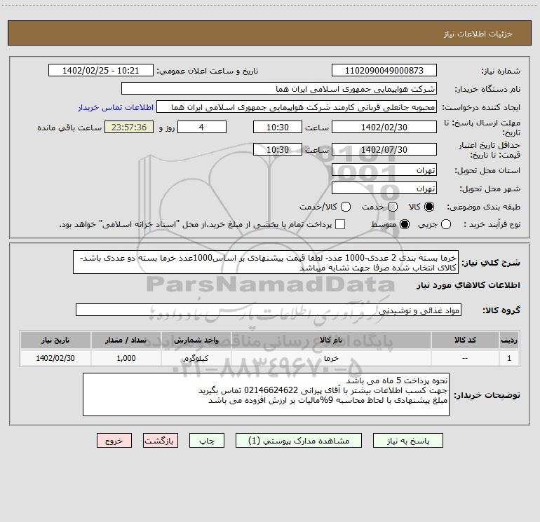 نام دستگاه خریدار:شرکت هواپیمایی جمهوری اسلامی ایران هما