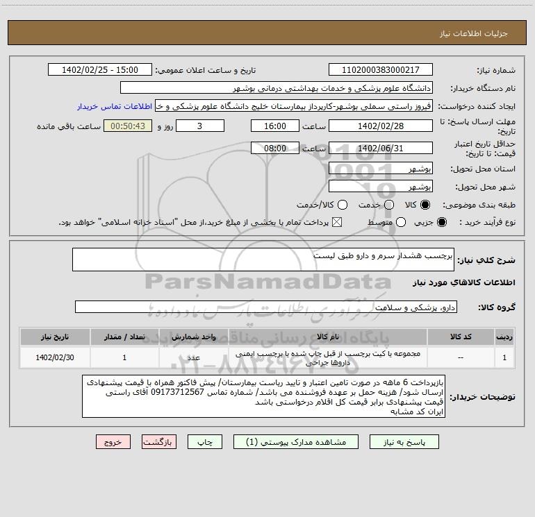 نام دستگاه خریدار:دانشگاه علوم پزشکی و خدمات بهداشتی درمانی بوشهر