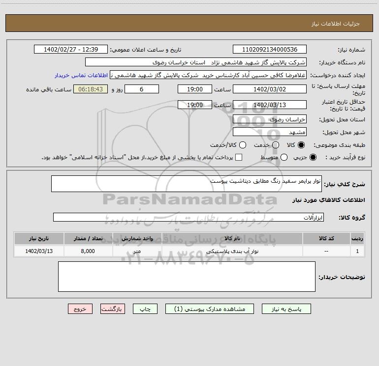 نام دستگاه خریدار:شرکت پالایش گاز شهید هاشمی نژاد استان خراسان رضوی