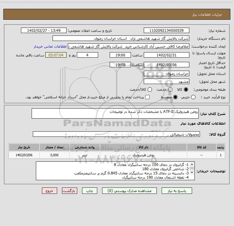 نام دستگاه خریدار:شرکت پالایش گاز شهید هاشمی نژاد استان خراسان رضوی