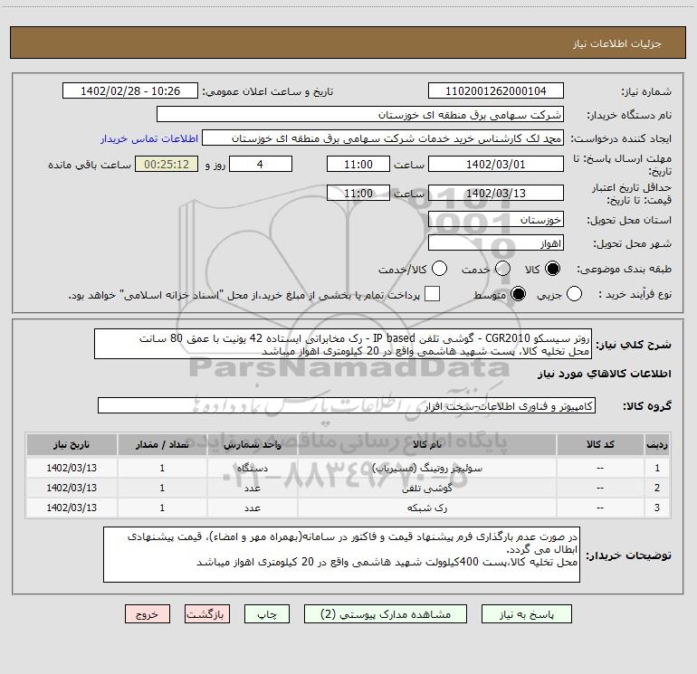 شرح کلی نیاز: روتر سیسکو CGR2010 - گوشی تلفن IP based - رک مخابراتی ایستاده 42 یونیت با عمق 80 سانت
