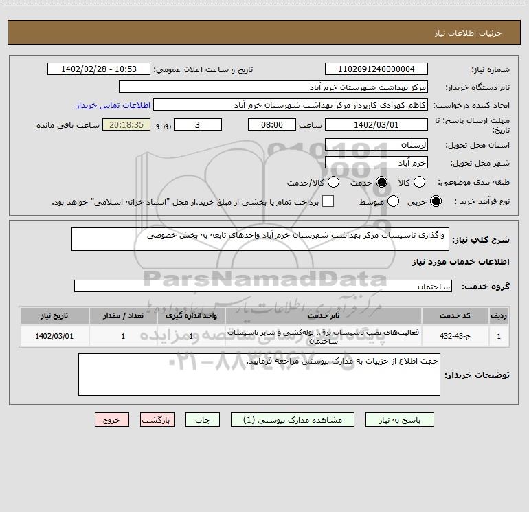 شرح کلی نیاز: واگذاری تاسیسات مرکز بهداشت شهرستان خرم آباد واحدهای تابعه به بخش خصوصی