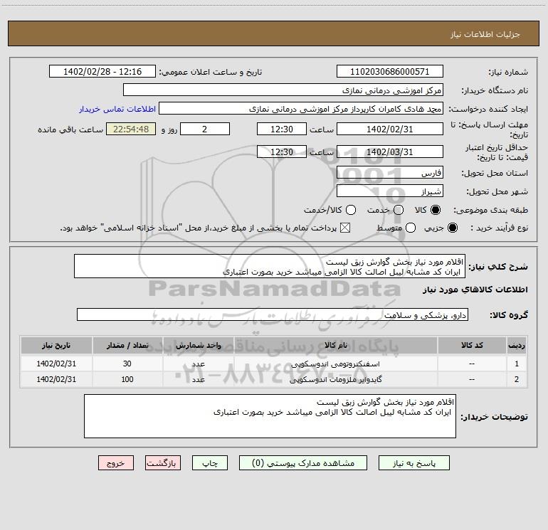 نام دستگاه خریدار:مرکز اموزشی درمانی نمازی