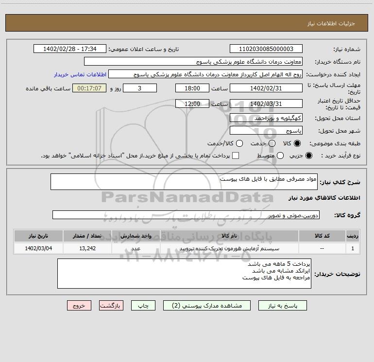 نام دستگاه خریدار:معاونت درمان دانشگاه علوم پزشکی یاسوج