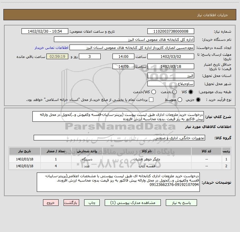 نام دستگاه خریدار:اداره کل کتابخانه های عمومی استان البرز