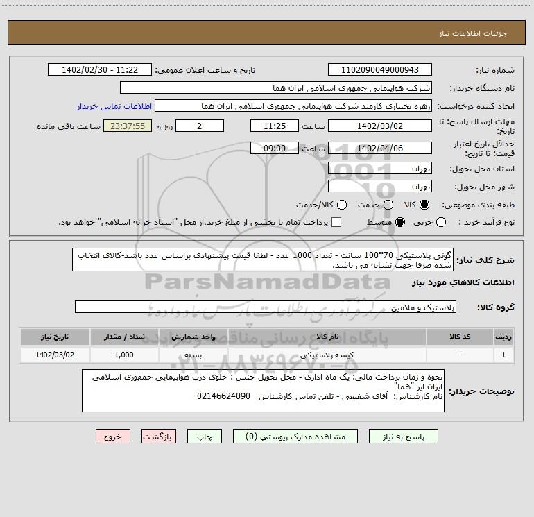 نام دستگاه خریدار:شرکت هواپیمایی جمهوری اسلامی ایران هما