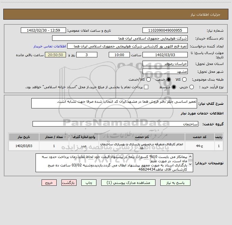 نام دستگاه خریدار:شرکت هواپیمایی جمهوری اسلامی ایران هما