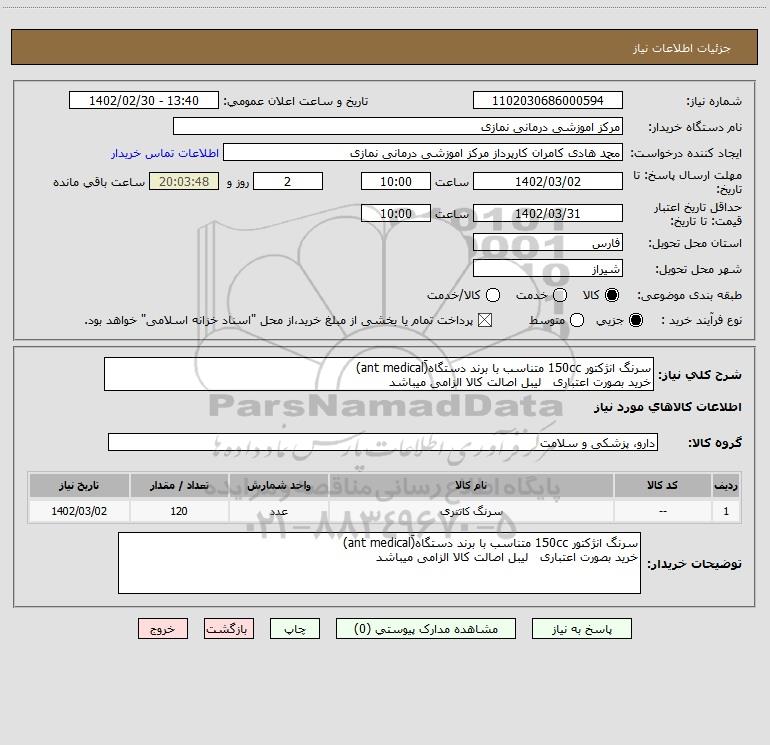 نام دستگاه خریدار:مرکز اموزشی درمانی نمازی