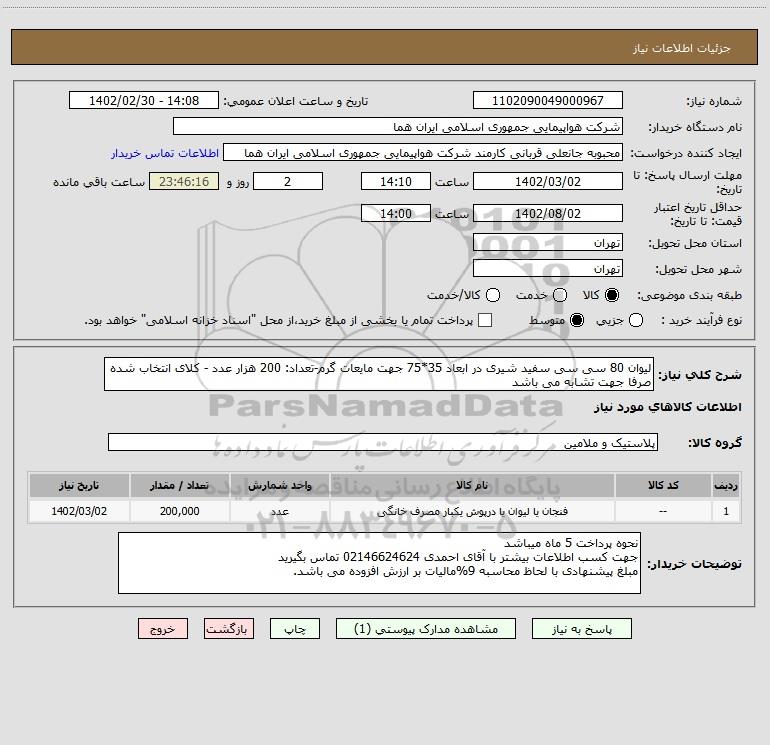 نام دستگاه خریدار:شرکت هواپیمایی جمهوری اسلامی ایران هما