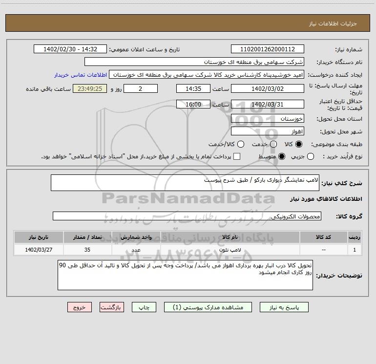 نام دستگاه خریدار:شرکت سهامی برق منطقه ای خوزستان