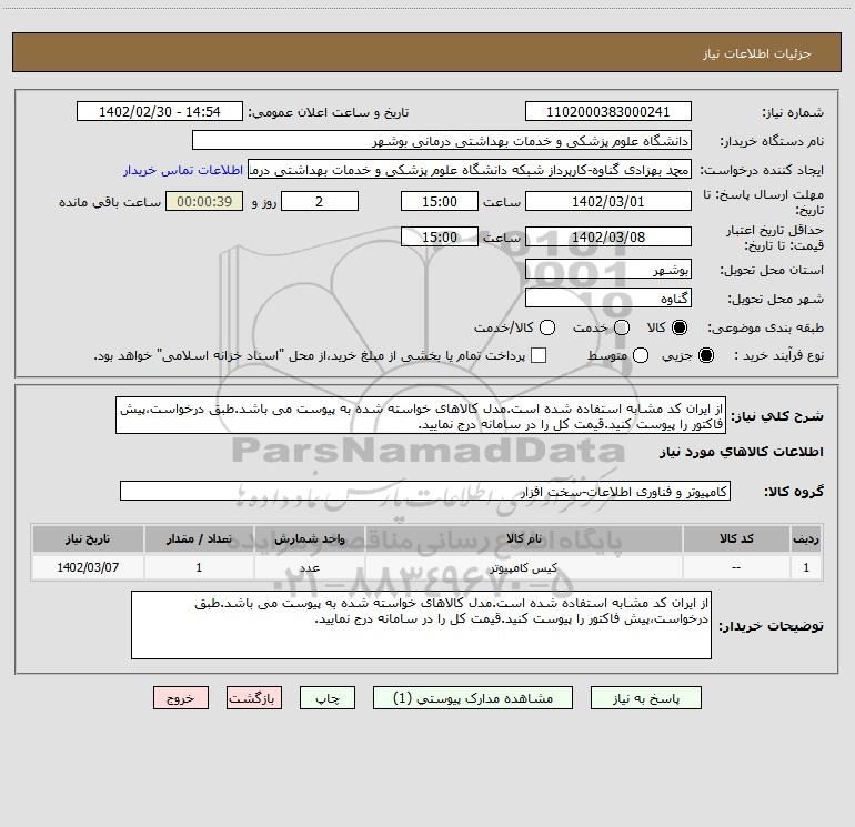 نام دستگاه خریدار:دانشگاه علوم پزشکی و خدمات بهداشتی درمانی بوشهر