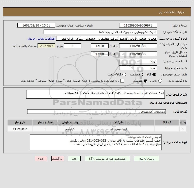 نام دستگاه خریدار:شرکت هواپیمایی جمهوری اسلامی ایران هما