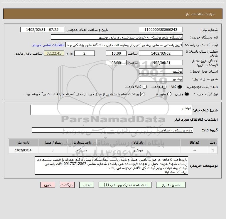 نام دستگاه خریدار:دانشگاه علوم پزشکی و خدمات بهداشتی درمانی بوشهر