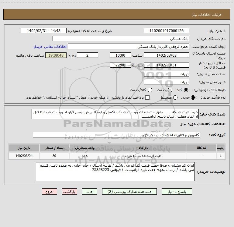 شرح کلی نیاز: خرید کارت شبکه ... طبق مشخصات پیوست شده ، تکمیل و ارسال پیش نویس قرارداد پیوست شده تا قبل از اتمام مهلت ارسال پاسخ الزامیست
