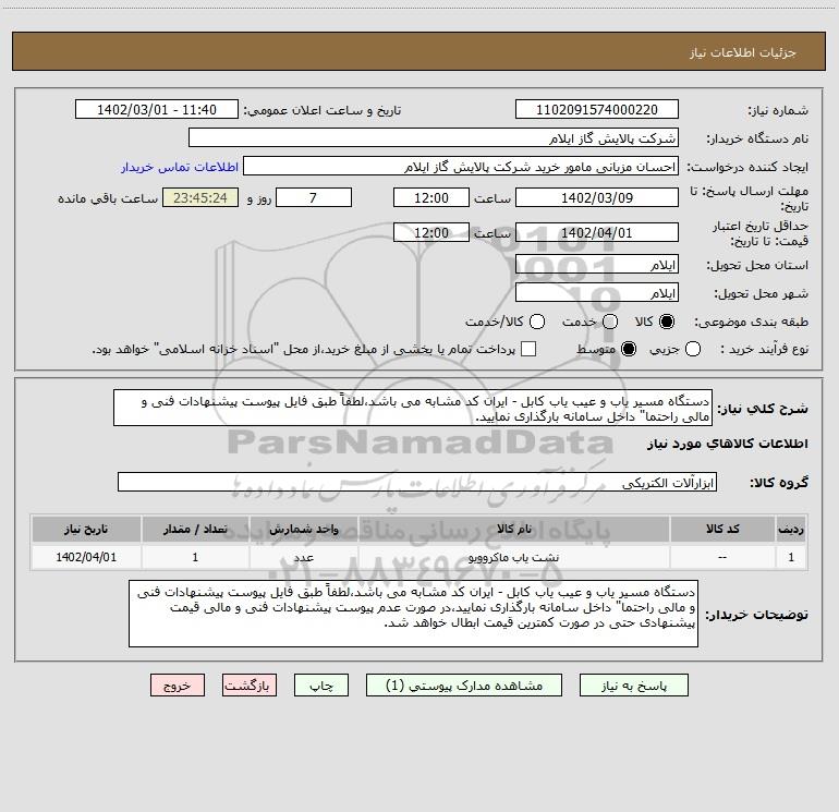 شرح کلی نیاز: دستگاه مسیر یاب و عیب یاب کابل - ایران کد مشابه می باشد،لطفاً طبق فایل پیوست پیشنهادات فنی و مالی راحتما" داخل سامانه بارگذاری نمایید.