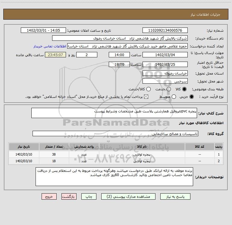 نام دستگاه خریدار:شرکت پالایش گاز شهید هاشمی نژاد استان خراسان رضوی