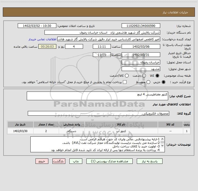 نام دستگاه خریدار:شرکت پالایش گاز شهید هاشمی نژاد استان خراسان رضوی