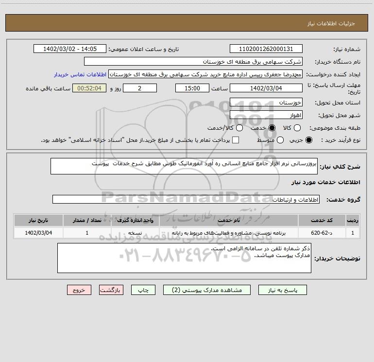 نام دستگاه خریدار:شرکت سهامی برق منطقه ای خوزستان