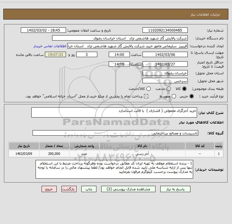 نام دستگاه خریدار:شرکت پالایش گاز شهید هاشمی نژاد استان خراسان رضوی