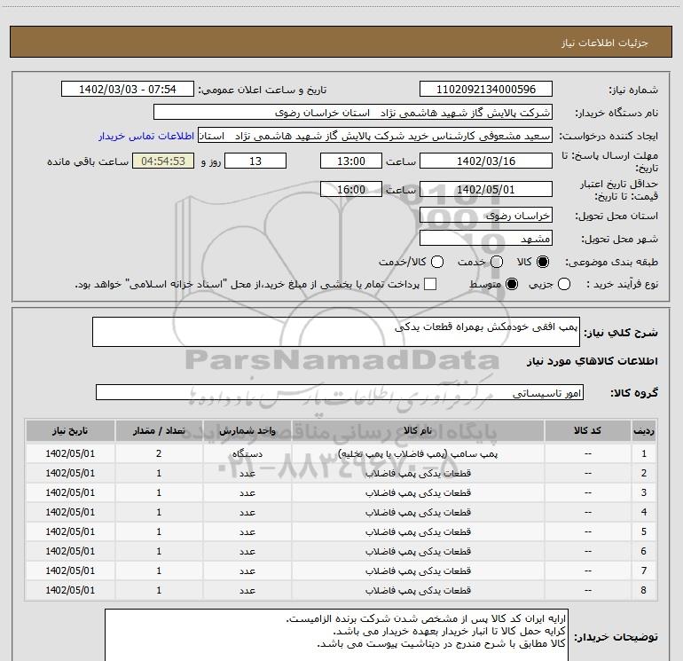 نام دستگاه خریدار:شرکت پالایش گاز شهید هاشمی نژاد استان خراسان رضوی