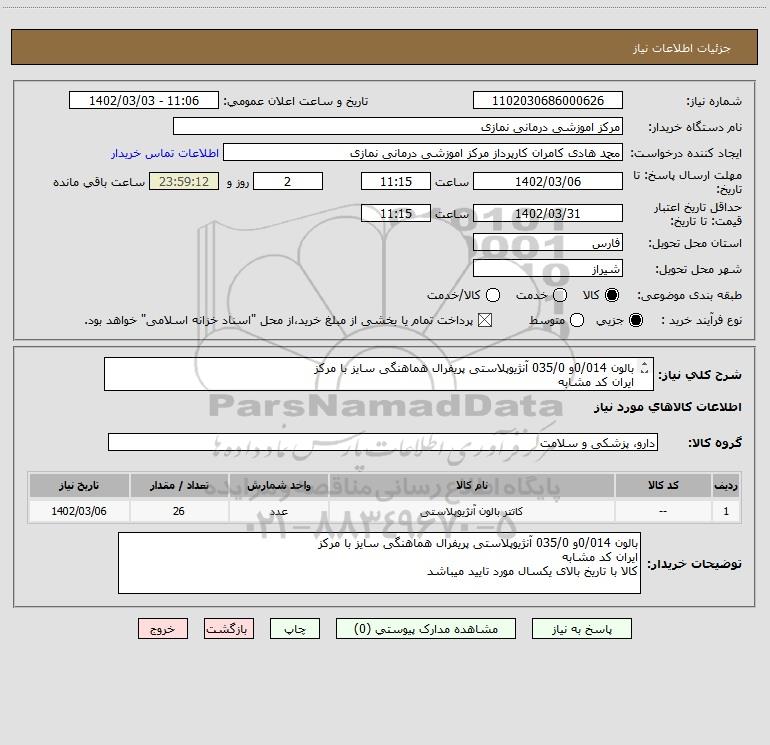 نام دستگاه خریدار:مرکز اموزشی درمانی نمازی