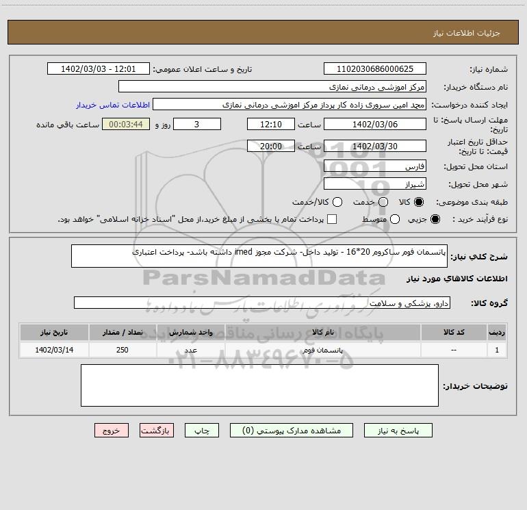 نام دستگاه خریدار:مرکز اموزشی درمانی نمازی