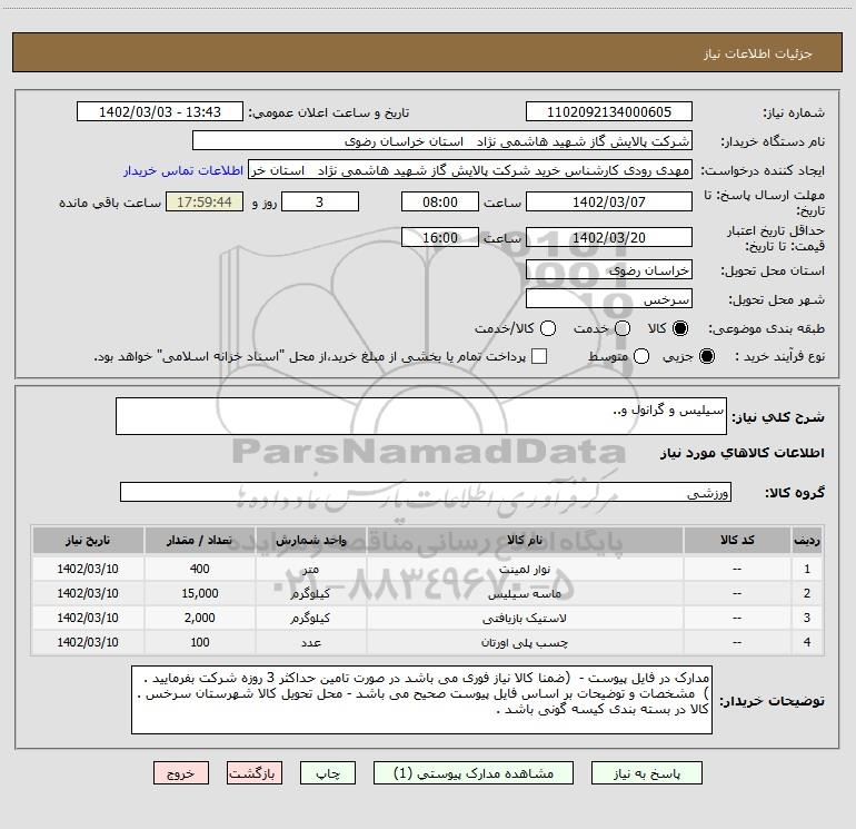 استعلام سیلیس و گرانول و.., استعلام سیلیس و گرانول و..