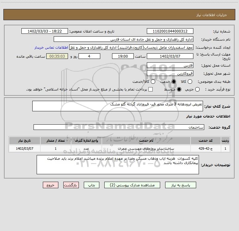 استعلام تعریض ابرودهانه 3 متری محور قیر- فیروزاباد گردنه گلو مشک, استعلام تعریض ابرودهانه 3 متری محور قیر- فیروزاباد گردنه گلو مشک