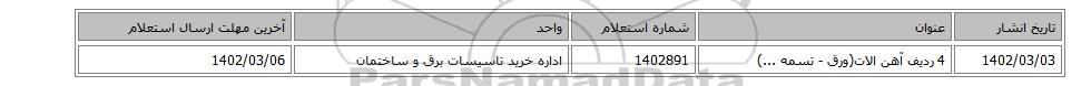 - استعلام خرید آهن آلات پروژه شهید رئیسی طبق برگ استعلام پیوست