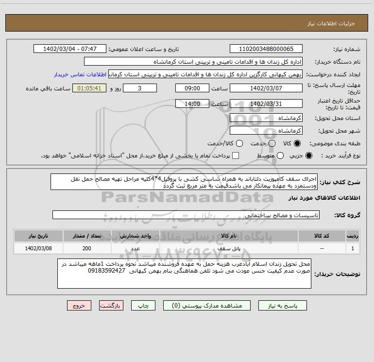 نام دستگاه خریدار:اداره کل زندان ها و اقدامات تامینی و تربیتی استان کرمانشاه